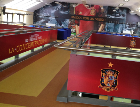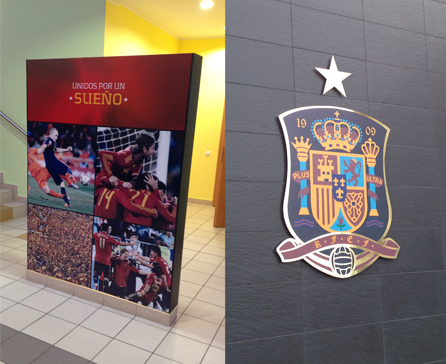Dvila has been selected by the Royal Spanish Football Federation to participate in Euro 2012. Our mission: to design and implement the architecture visual concentration Hotel La Roja. The aim is aesthetic, but especially motivational. So we've combined powerful stimulant graphic messages, in order to keep the international spirit of our highest.
